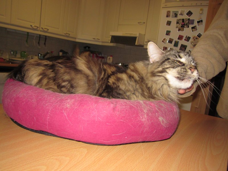 Asteen verran meidän kissoja isompi tyttö tässä, hyvin mahtuu petiinsä :P